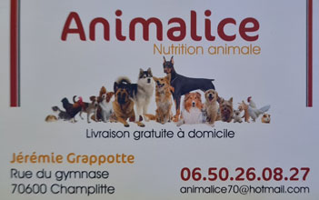 Membre de soutien | Jérémie GRAPOTTE Animalice Rue du gymnase 70600 CHAMPLITTE Tél. : 06 50 26 08 27 animalice70@hotmail.com |