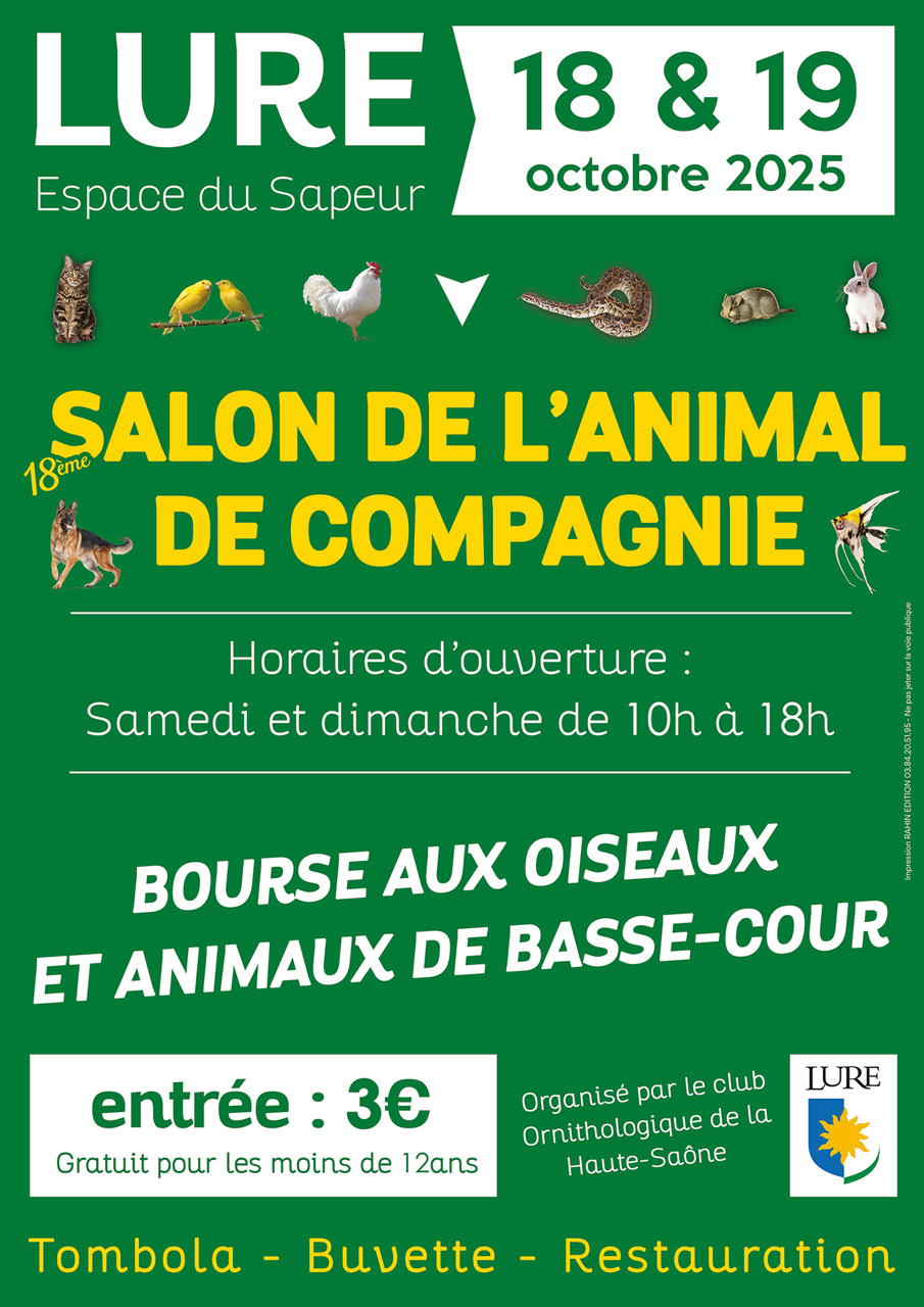 Les 18 et 19 octobre, le Club Ornithologique de la Haute-Saône organise le 18ème Salon de l’Animal de Compagnie à Lure.